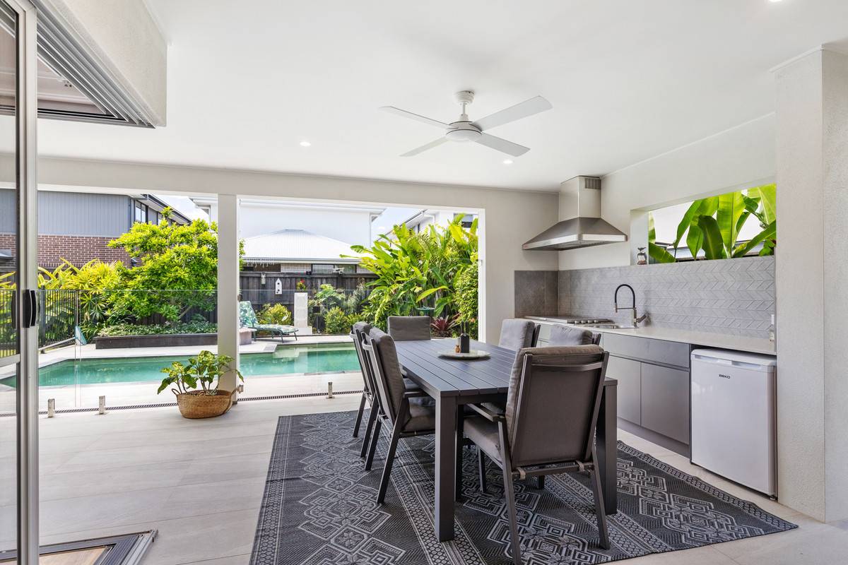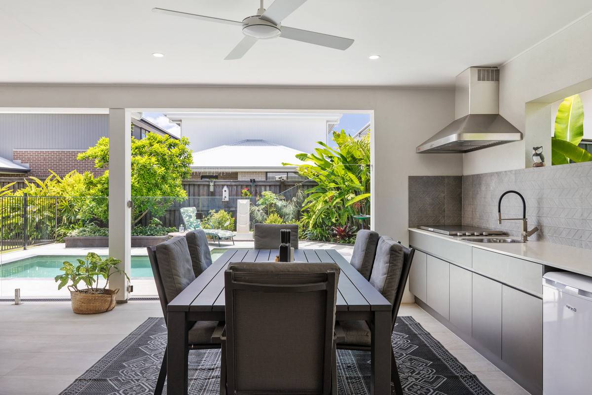 Setting a new standard of quality and finish, this designer home boasts a functional and stylish layout with excellent flow from indoor living to outdoor entertaining. Large glass doors slide away to connect the immaculate open plan kitchen, living and dining to the grand alfresco and glistening pool. The outdoor kitchen is well equipped with built-in barbecue, range, sink and gas plumbing. This spectacular open space is grand and inviting, with glimpses of the glistening pool from almost every vantage.