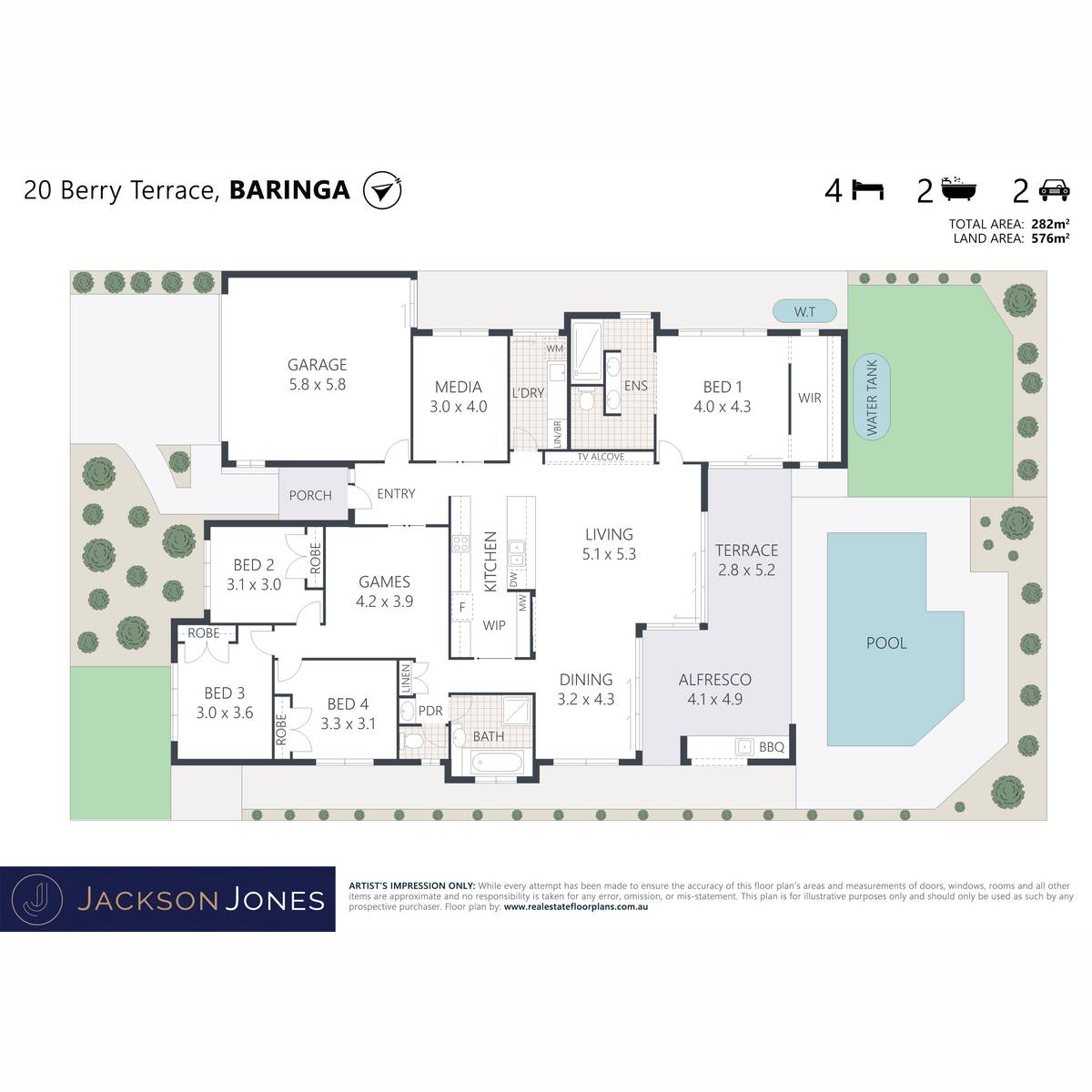 - Multiple living zones including media, activity and open-plan living