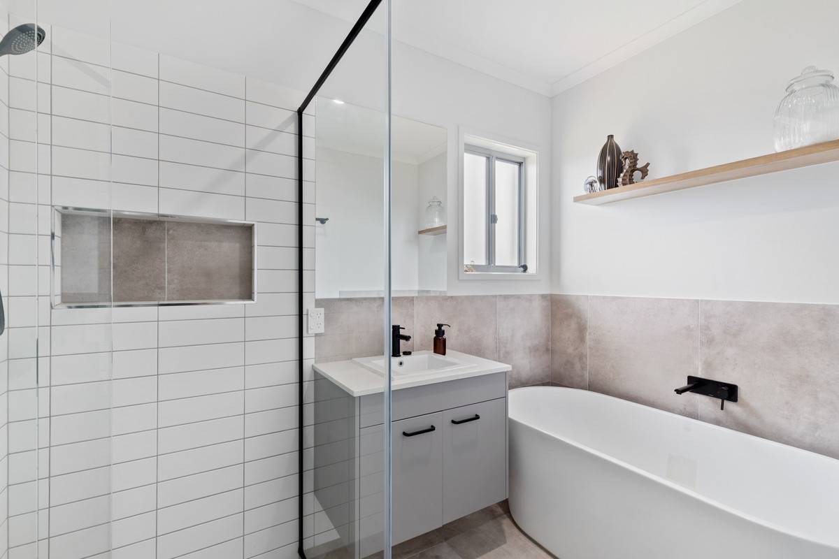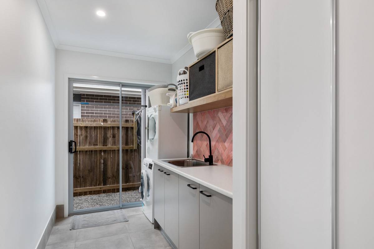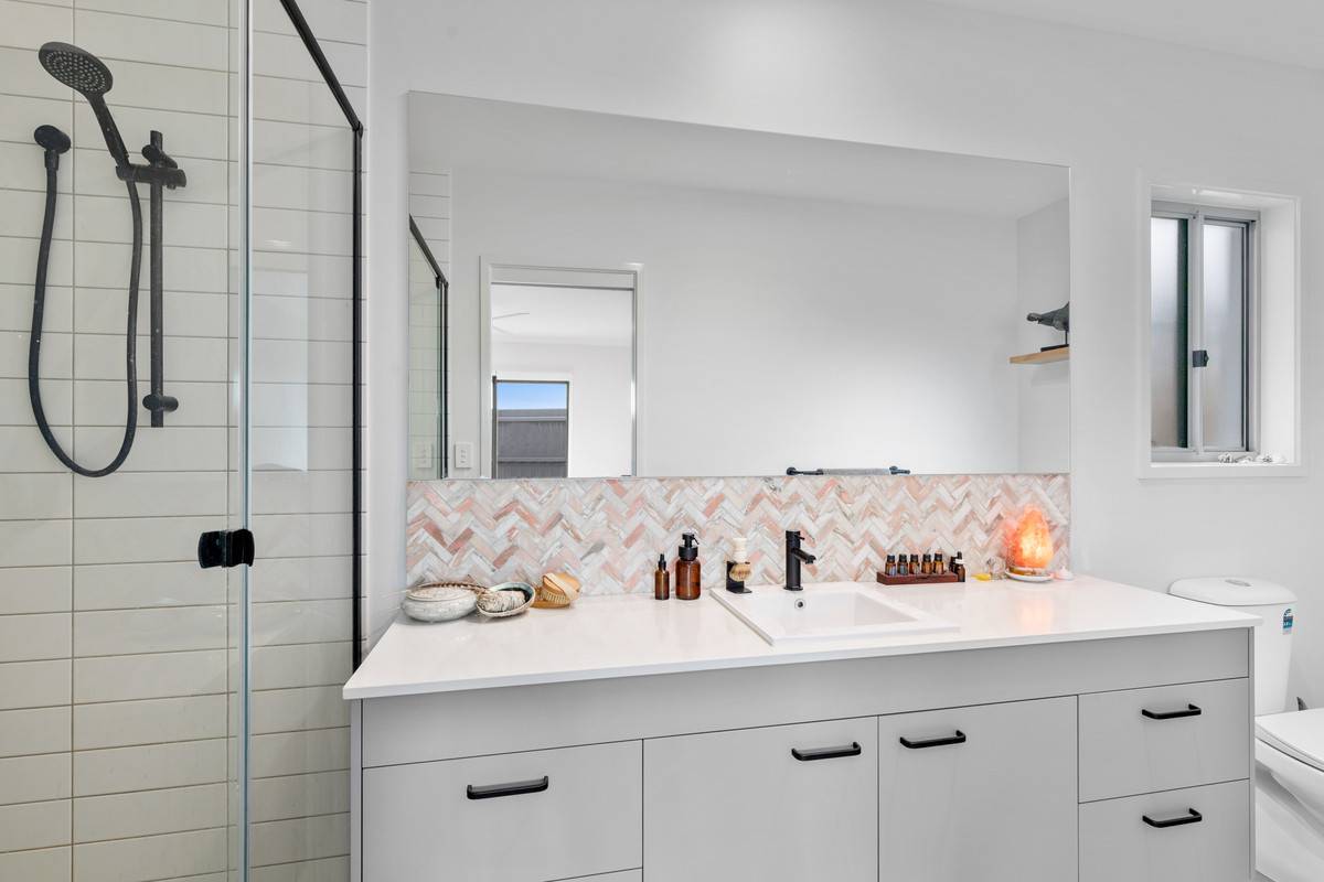 A study space is located opposite the well-appointed media room which could also be utilised as a home office. Privately positioned at the rear of the property, a bright and airy hallway opens onto a magnificent open-plan living space with gorgeous raked ceilings, large windows and impressive finishes. The spacious, modern kitchen boasts a stunning feature splash back, pendent lighting, inbuilt sink with reconstituted stone benches and an enviable butlers pantry. Make a mess and close the door with this stunning butlers pantry offering a sink and plenty of built in storage with power outlets for every appliance! Stunning, high ceilings make this ambient space inviting and connected to the outdoor landscape. Joining doors open back for seamless flow to the outdoor entertaining and spacious yard. Enjoy the relaxing covered alfresco entertaining and huge yard with side access and ultimate privacy. The master bedroom is also located at the rear of the property with double vanity ensuite and walk in robe. You’ll be tickled pink with the gorgeous feature tile and quality finished of the ensuite bathroom. Unwind on the private patio from the master suite connected via glass sliding doors. This stunning home is an absolute must see!