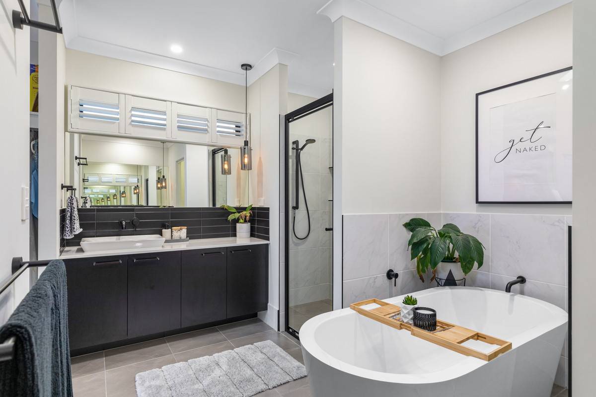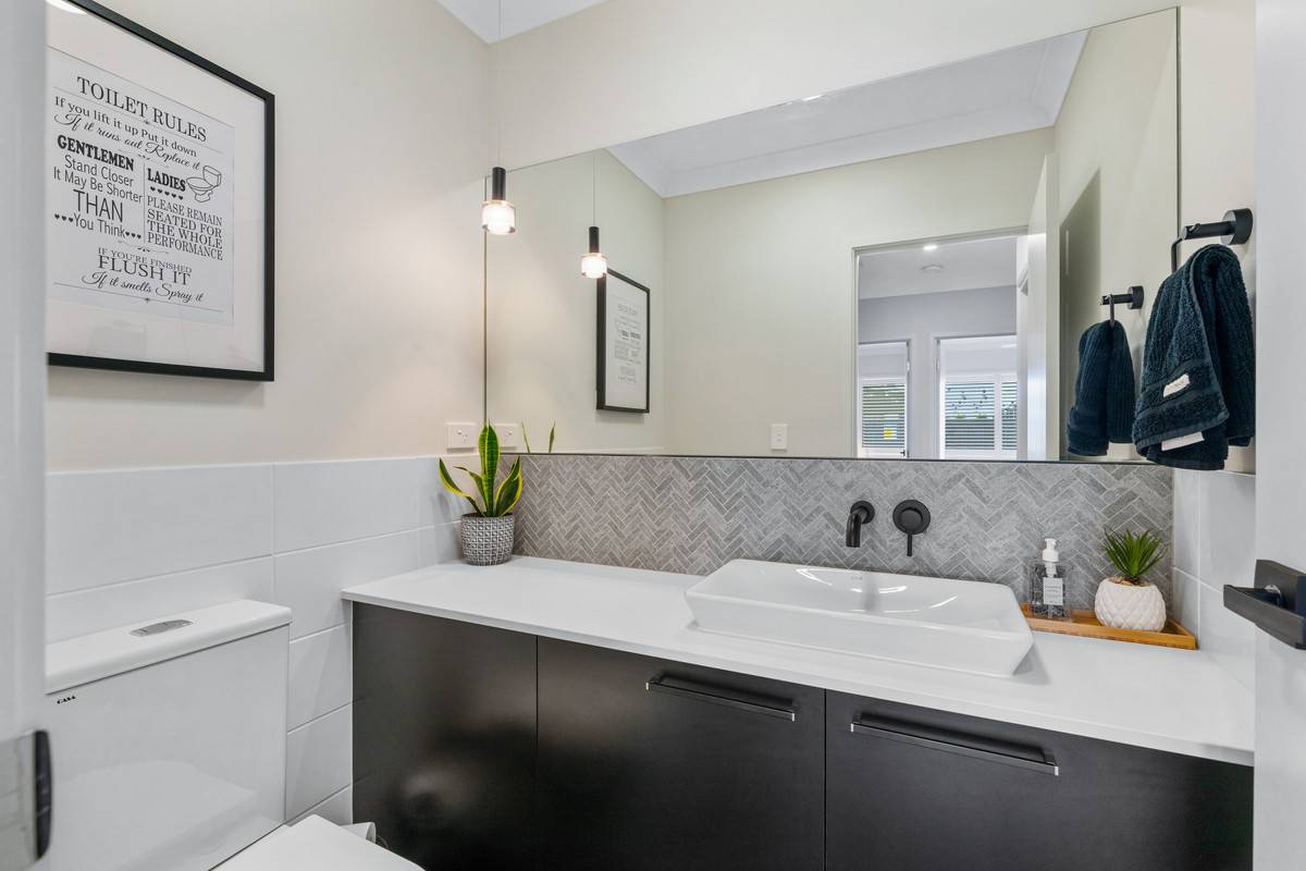 Accessing the master suite via double doors, this ambient space oozes luxury and relaxation. With beautiful views to the private front lawn and gardens, this master suite is fit for royalty. The ensuite bathroom features a beautiful freestanding bath, separate WC spacious shower with niche and two seperate his/her vanities. The walk in robe offers plenty of space and a full length mirror.  With separate powder room, this layout is perfect for guests or children.