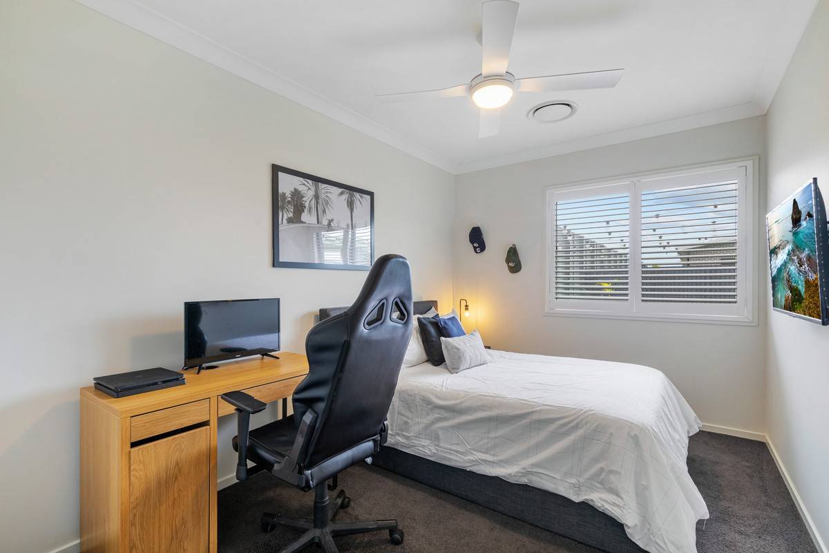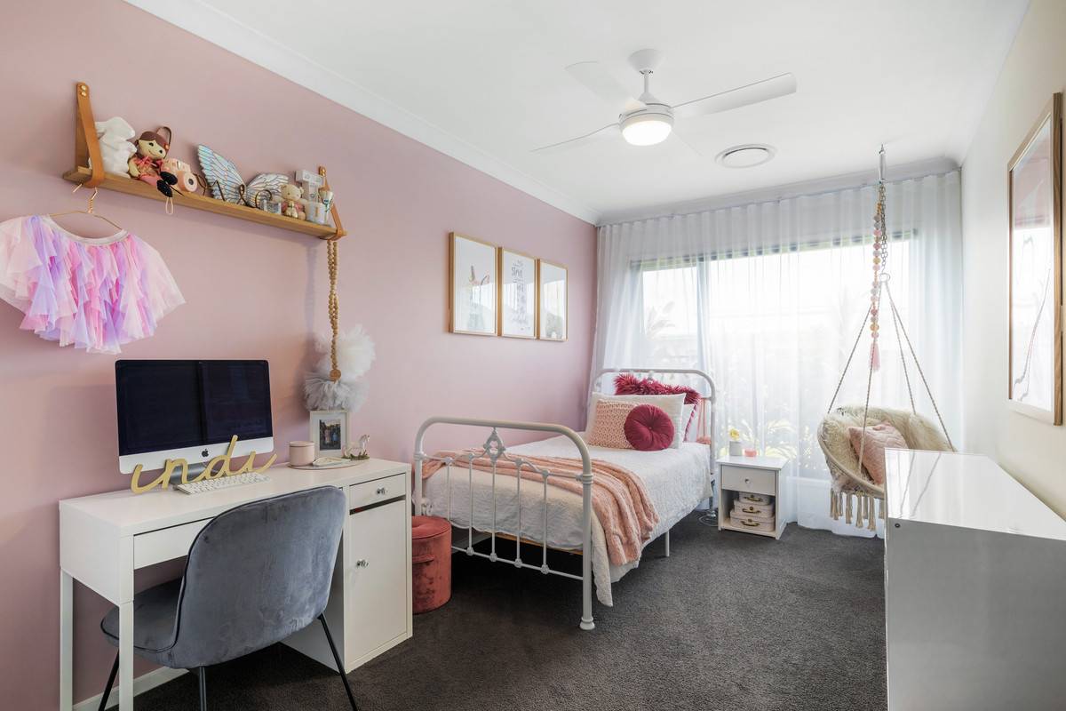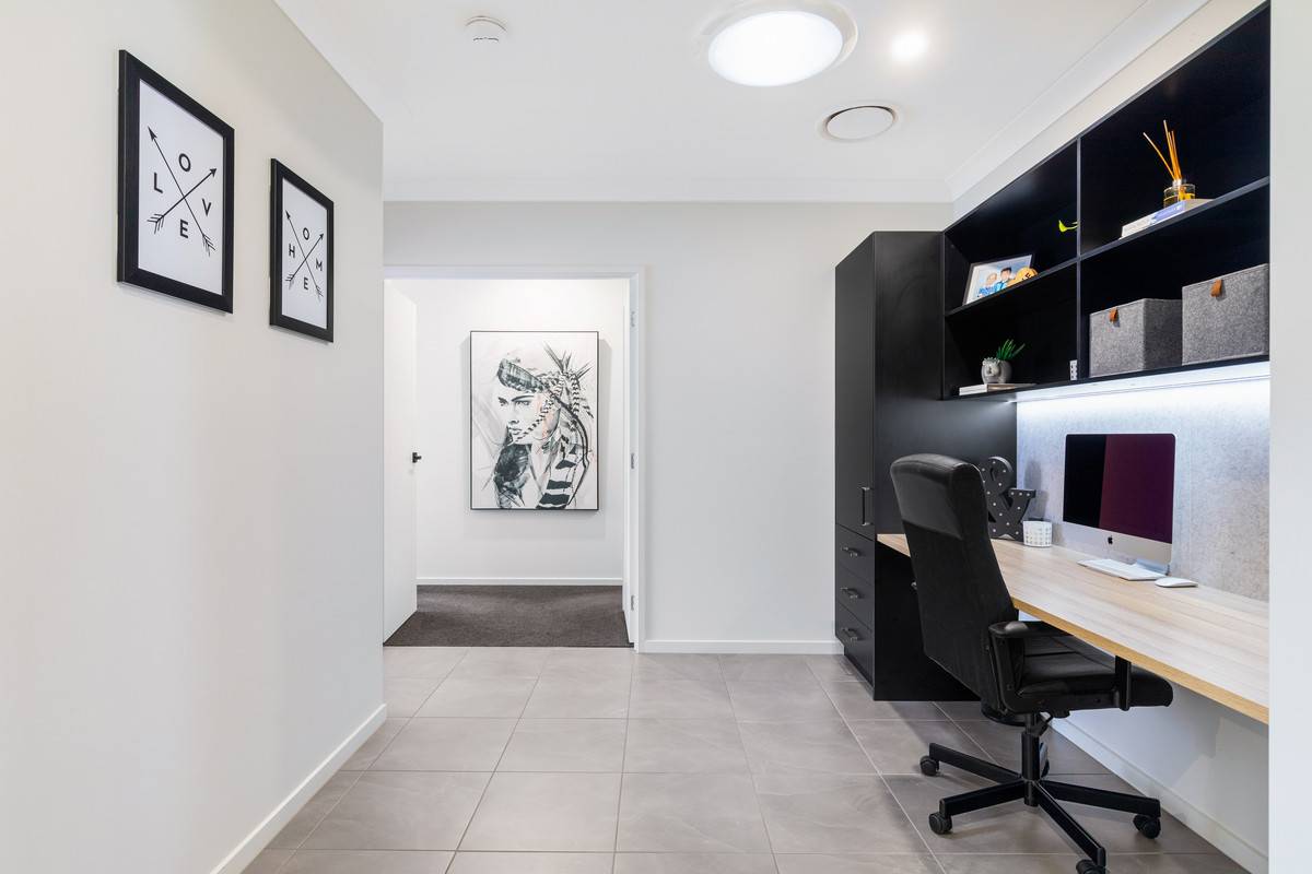 Three further bedrooms are well-appointed and offer built-in wardrobes and ceiling fans. Located just off the main entrance is a built-in study with backlit walls; an ideal space to work from home or  home business!