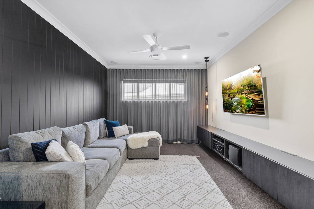 As functional as it is beautiful, the impressive entertainer’s kitchen boasts premium bench tops, quality fittings, and modern appliances, all lit by opulent pendant lighting over the expansive breakfast bar and dining area. Be amazed by the butlers pantry and adjoining laundry with backlit walls and access to the side of the property via a large glass door. The media boasts built-in ceiling surround sound as well with black-out blinds and feature lighting. Offering multiple living zones, there is also a separate rumpus space or kids retreat at the rear of the property.