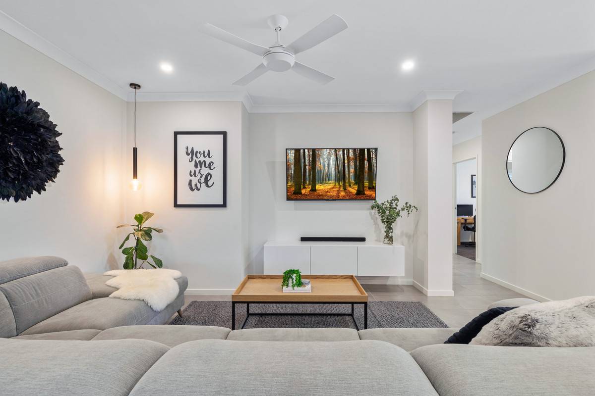 With private driveway, grand facade and manicured front lawn and gardens, this stunning four-bedroom home makes a lasting first impression. Spanning an impressive 287 sqm accommodation over a 824 sqm block, this remarkable property offers the very best of the Sunshine Coast lifestyle with space for the whole family. The immaculate presentation and welcoming ambience throughout creates an immediate feeling of luxury and opulence.  Be instantly charmed by the high ceilings, wide hallways, and pendant lighting that welcome you home.