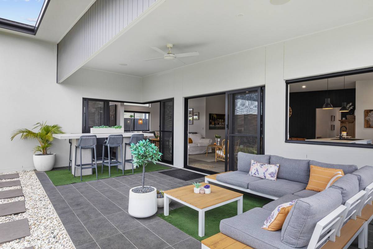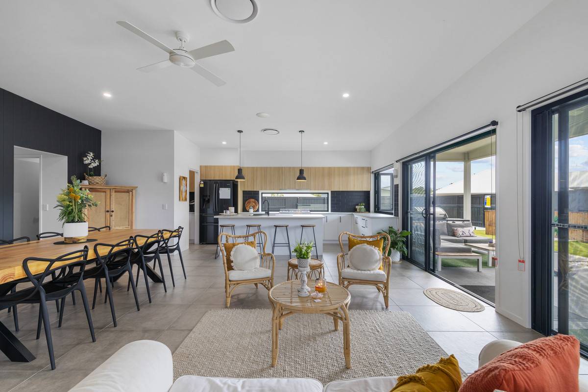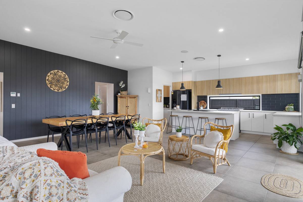 - Open-plan main living including kitchen, sitting area, dining and lounge