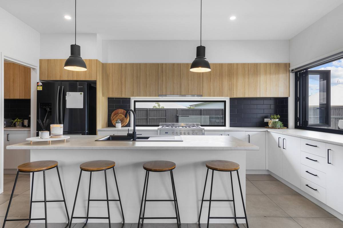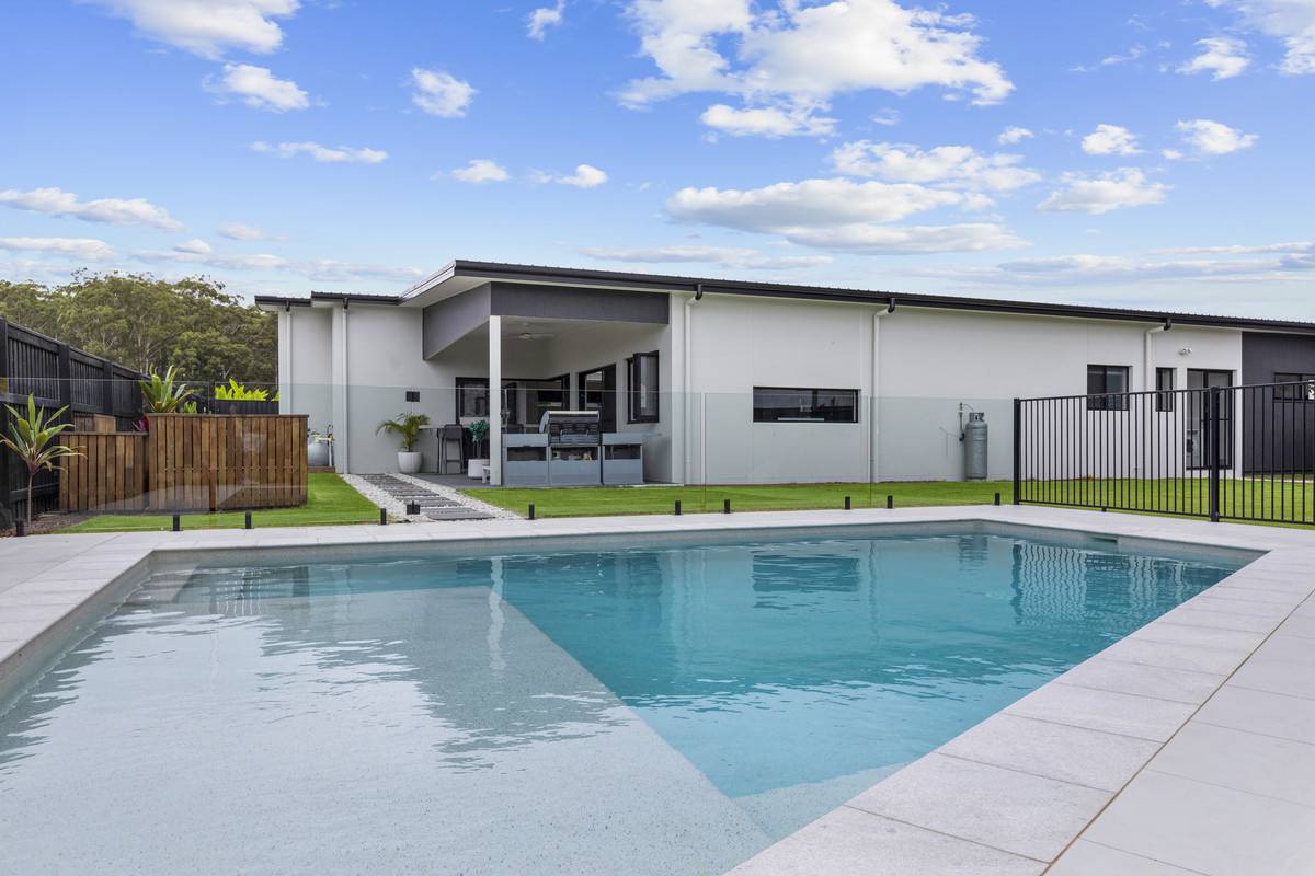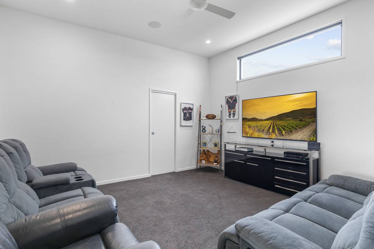 The main entertaining space utilises the wide block with a sprawling open-plan offering multiple living areas. With VJ panel feature wall, stunning high ceilings, and sliding doors that open onto the expansive outdoor entertaining, this is a remarkable space. The entertainer’s kitchen offers an inviting space with a large island bench, modern appliances, servery windows and views to the glistening pool, complete with large shallow area for the kids. An immaculate butler’s pantry offers power outlets and a continuation of bespoke cabinetry and bench-space. The impressive outdoor entertaining area offers multiple zones with an outlook to the stunning blue pool and lush grassy yard. At the rear of the property is the ultimate media or sports room with WC, also flowing onto the impressive outdoor space via glass sliding doors.