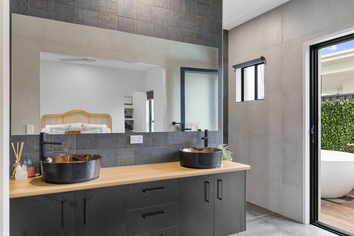 The luxurious master suite is generously sized and boasts every luxury. Complete with double entry walk-in robe and a decadent ensuite bathroom, you’ll have no reason to leave this slice of paradise. The ensuite boasts a glamorous double vanity with feature basins, floor-to-ceiling luxury tiles with shower niche. Indulge in the opulence of the private, free-standing, outdoor bath finished with rose gold tapware on a decked platform. Relax with a glass of wine and let the bubbles wash away your worries in this extraordinary space.
