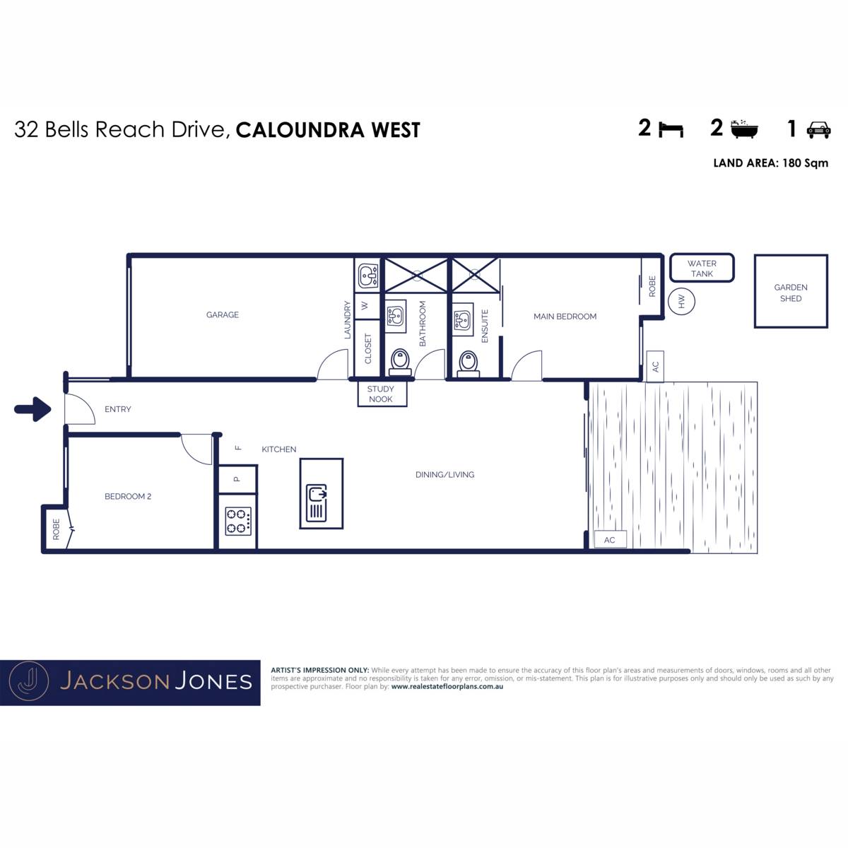 With raked ceilings and large windows this property was built with space and light in mind. The open-plan kitchen, living and dining flows outdoors to the covered deck and garden. The master bedroom is located at the rear of the property with ensuite bathroom, built in robe and views to the garden. Separated by the main living space, the second bedroom also boasts a built in robe with easy access to the main bathroom.