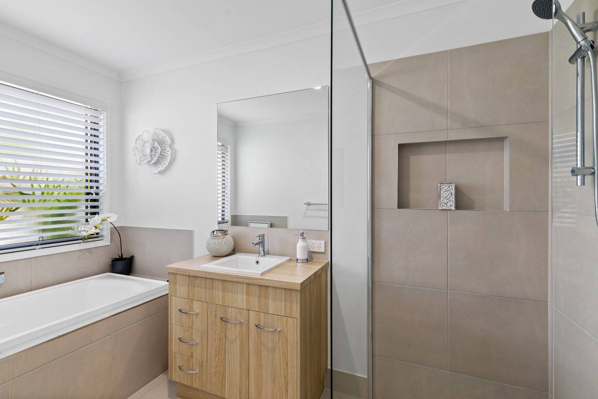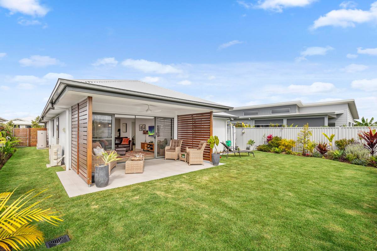 Welcomed by a beautifully landscaped garden and covered patio entrance, this three-bedroom home conveys modern luxury in a tranquil pocket of Nirimba.