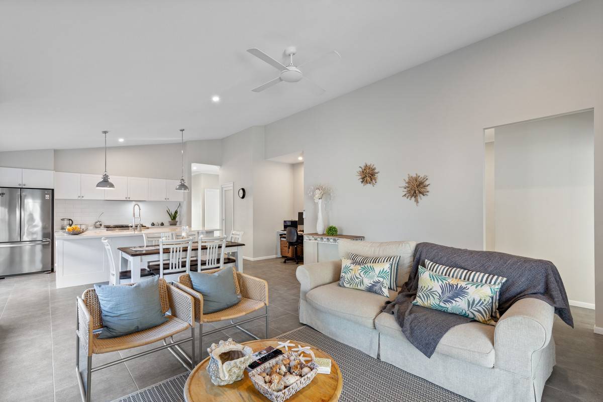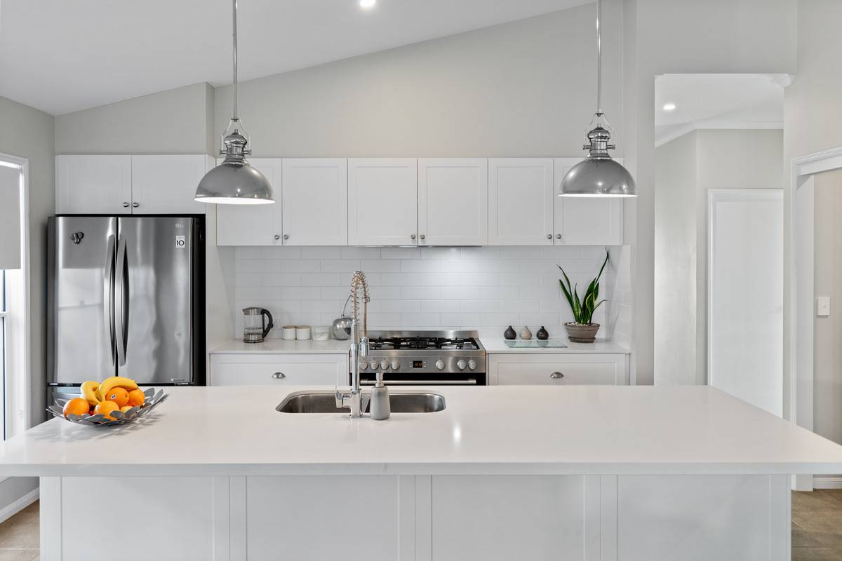 Feel immediately at home and at ease with the quality and calm of this impressive property. Natural light, pendant lighting and neutral-toned interiors capture the contemporary Hamptons essence of this home. Bright and airy hallways invite you through to the main living space with a striking kitchen. The tiled backsplash, abundance of storage and counter space, modern appliances and butters pantry makes this an entertainers dream. This stunning kitchen also boasts impressive pendant lighting over the breakfast bar and oversees the dining, living, and sizeable outdoor covered entertaining area.