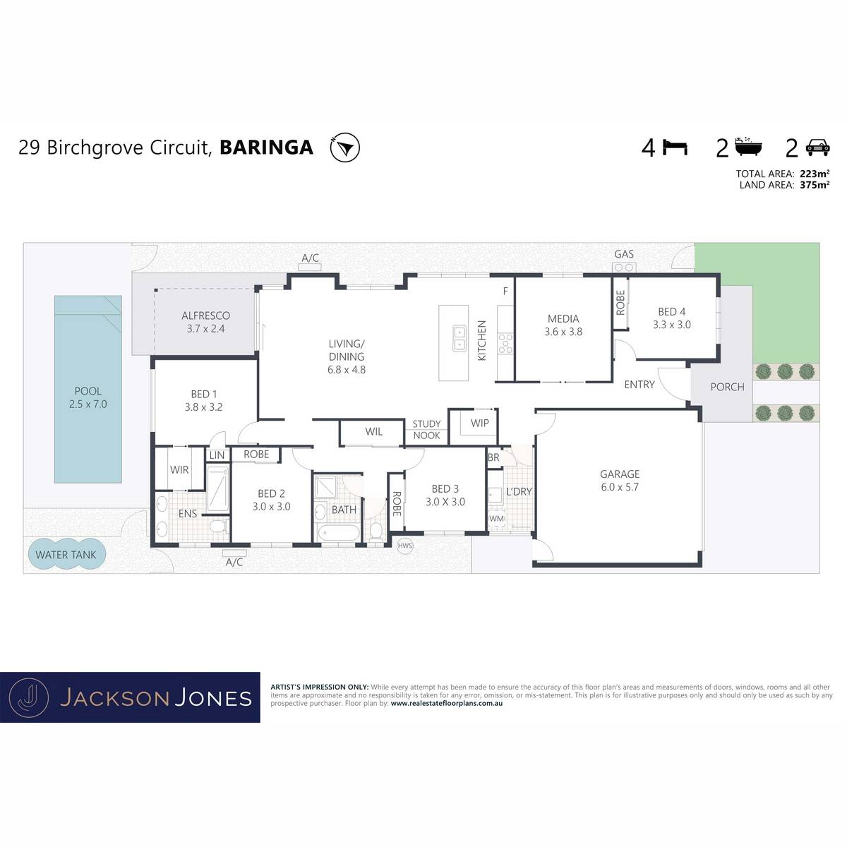 The master suite is located at the rear of the property and offers a double vanity ensuite and walk-in robe. The further three bedrooms are all equipped with built in robes and ceiling fans. A media room is well positioned away from the main living space, providing room for the whole family! The main bathroom which is also boasts a modern and stylish finish. The laundry benefits from direct access to the outdoor drying area and back garden. Be sure to put this lovely home on your shortlist!
